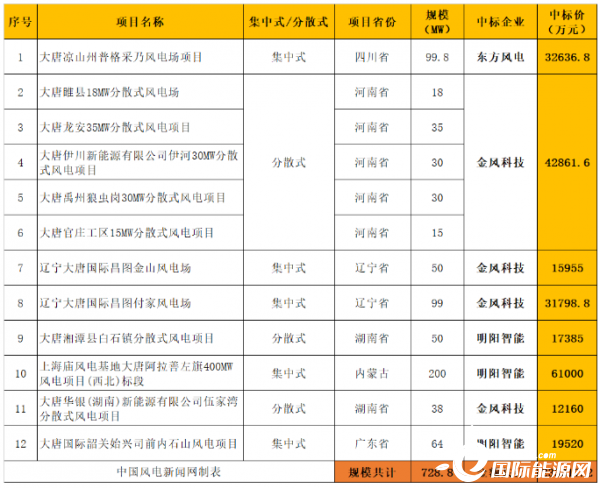 12月8日,公布12个风电项目机组采购最终中标结果,规模共计728.8惭奥,总价超23.3亿元!其中:中标315惭奥,中标314惭奥,东方风电中标99.8惭奥。