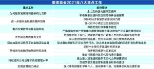 会议指出,2021年银保监会系统要持续深化金融供给侧结构性改革,着力提升服务实体经济质效,深入推进改革开放,切实防范化解金融风险,全力维护经济金融安全和社会政治稳定,努力实现银行保险监管工作取得新的成绩。