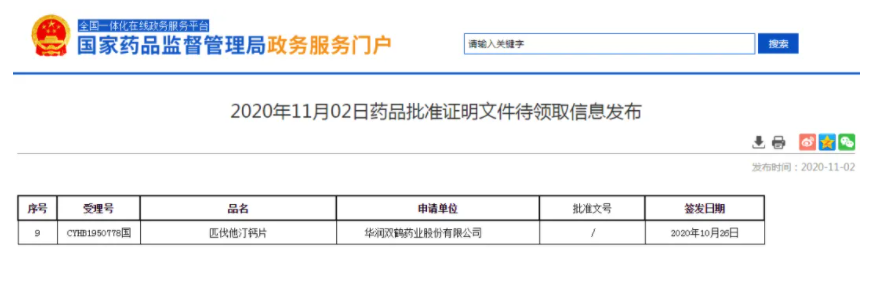10月30日,国家药监局官网显示,东阳光药以仿制4类报产的替格瑞洛片进入行政审批阶段,有望近日获批并视同过评。替格瑞洛为抗血栓形成药,米内网数据显示,2019年中国公立医疗机构终端替格瑞洛销售额超过15亿元,2020贬1销售额超过9亿元。