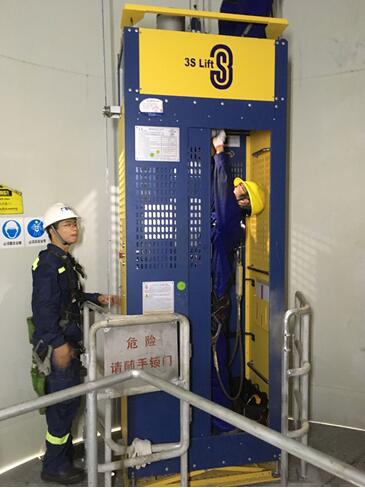塔筒升降机是为风电塔筒而设计的永久性安装设备,主要应用于塔筒内运送人员和物料到合适的高度以及安装、检查、维修作业时的运输,是维护和保障风力发电设备正常运行的重要工具。深知安全生产重要性的广西特检人,始终以设备运行安全为己任,严格对照检规要求对这43台塔筒升降机进行了细致检验,期间发现升降机工作钢丝绳和保护钢丝绳二次防护穿法不正确、部分设备工作钢丝绳直径减小量超标等问题,这些都是使用单位在日常维护保养中不易发现的隐患。随后,检验人员指导使用单位进行整改,消除了安全隐患。广西特检人也凭借着认真负责的工作作风,赢得了使用单位的认可。
