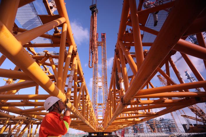 中国石化新闻网讯(陈卫民 华赟)近日,被誉为“世界第一吊”的4000吨级履带式起重机在中国石化镇海基地先后完成煤焦制氢项目变换气吸收塔、非变换气吸收塔的吊装任务,目前正进行模块化转场,据悉,该起重机由中国石化与徐工集团共同研发制造,是当前全球起重能力最大的履带式起重机,采用“四履带八驱动”配置,人字形双臂架长140米,加上超起桅杆、配重、吊钩等,占地面积近3000平方米,最大起重能力可达4000吨,起重力矩88000吨米,创造并保持着“高118米,重2155吨”的吊装记录,在镇海基地共计划完成5台6吊,累计5630吨的吊量,为加快设备安装进度创造条件,确保“决胜6.30”目标实现创造条件。