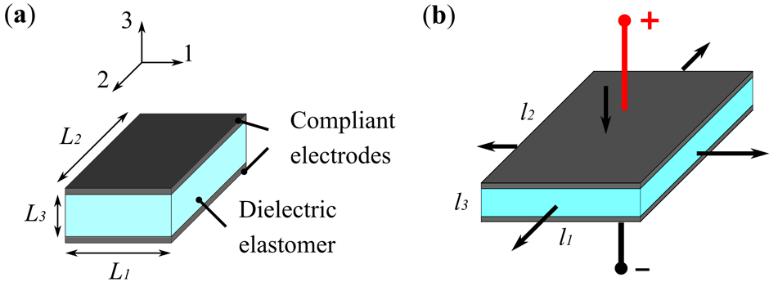 图1. 介电弹性体驱动器(a)组成和(b)驱动方式。