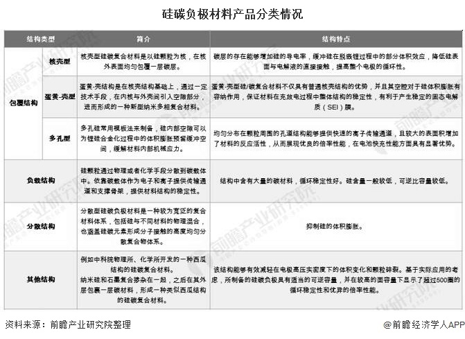 包覆结构中又可以根据包覆结构的不同分为核壳型、蛋黄-壳型和多孔型;负载结构循环稳定性好,可逆比容量较低;分散结构能够抑制硅体积的膨胀。