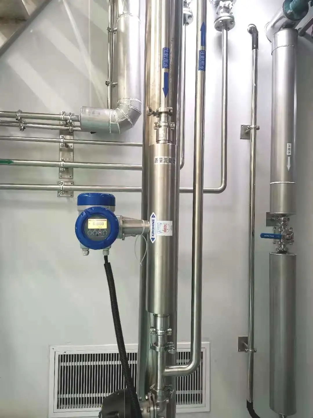 ?用质量流量计测量配液的注射水(超纯水),解决了由于介质不导电而无法用电磁流量计测量的问题