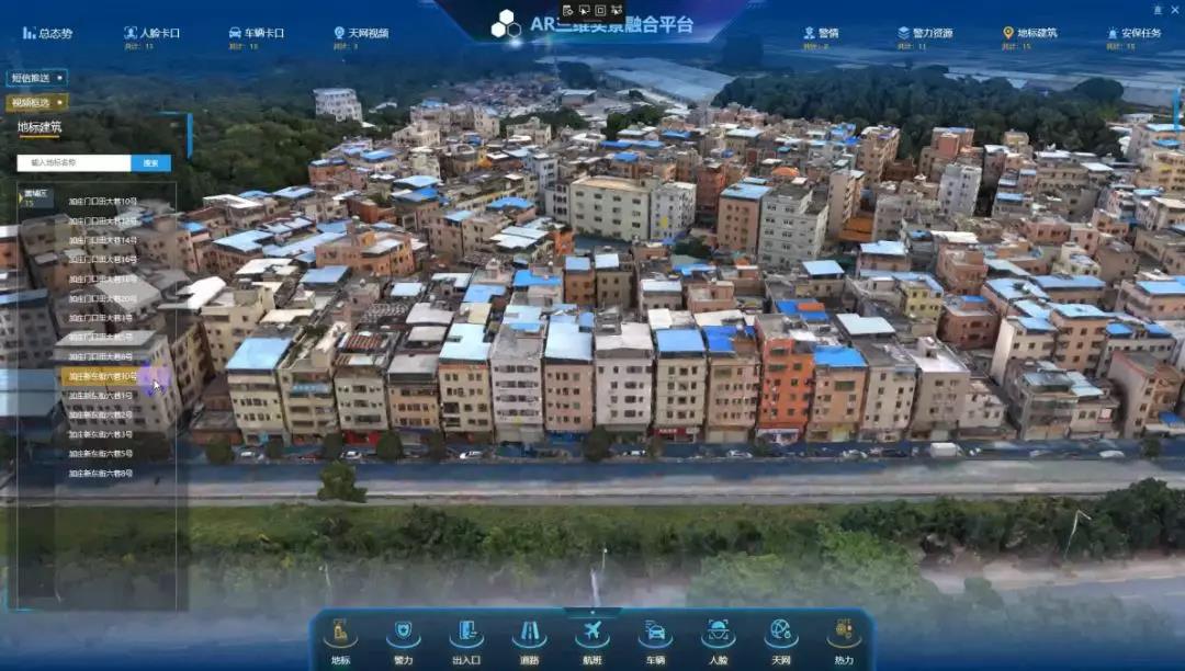 上面这张图是佳都科技在广州落地应用的一个社区城中村的案例。这是一个全息社区,和其它公司做得全息社区不大一样的地方,这是把整个社区复刻到系统当中来,而且每一栋楼都有编号,都关联到实有人口的数据、实有设施和单位的数据,各业务系统产生的数据会实时同步至这个社区的模型中,这样我们就很清晰地知道每天社区的变化,来往的人车、发生的事件,这才是真正的“全息”社区。