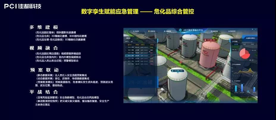 这是把叁维实景和运营洞察的能力用到安全生产领域,其中很重要的一块是危化品的监管工作。广东省所有的危化品都可以在这上面进行监管,不仅知道每个油罐的状态,还能知道它在历史上有没有发生过报警,怎么处置的,它的风险评估的情况。