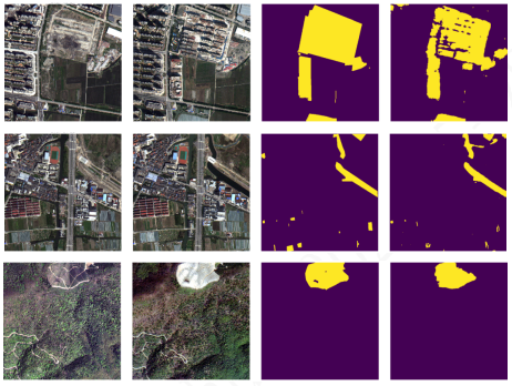 基于遥感影像的变化检测算法,利用不同时相的遥感影像来获取指定区域内土地覆盖类型的动态变化信息,将影像中随时间变化的像素赋予语义类别标签,广泛应用于生态资源监测、城市建设管理等领域。
