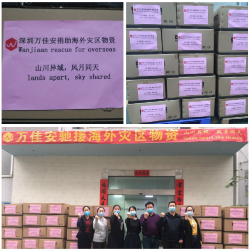 万佳安集团自2003年开展海外业务以来,逐步扩展优质渠道,结交众多合作伙伴。面对海外疫情的大爆发,万佳安集团同样给予了海外客户最大的爱心支持。从3月中旬至今,驰援海外30多个国家,100多家友商,捐赠20万只口罩及额温枪等防疫物资。山川异域,风月同天。同气连枝,共盼春来。