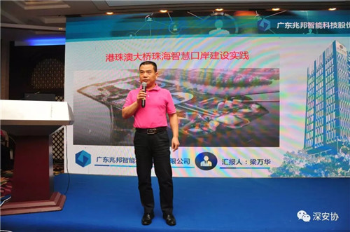 广东兆邦智能科技股份有限公司执行总经理梁万华带来了《港珠澳大桥珠海口岸的智慧口岸建设实践》的主题演讲,以港珠澳大桥珠海口岸的建设为实例,进行了详细的介绍。