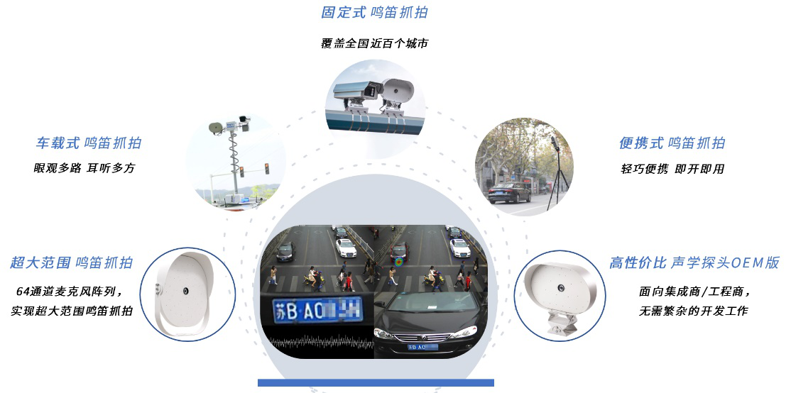 今年的交博会上,我们带来了鸣笛抓拍的升级产物,包括车载式、便携式鸣笛抓拍系统以及超大范围鸣笛抓拍系统、翱贰惭声学探头。这些产物都是第一次公开亮相,同时也代表了鸣笛抓拍产物的最高水平。