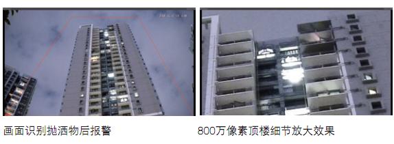 该高空抛物摄像机的结构设计和应用功能都非常成熟,其丰富的光照环境适应能力、数字透雾能力,也都很好支持该机高空抛物的检测准确性;而其800万超高清分辨率,更是让该机做到了精准分析、精准溯源的监控应用;另外,超星光级低照度成像能力以及红外补光功能,还让该机实现全天候应用,很好保障社区居民的人身和财产安全。
