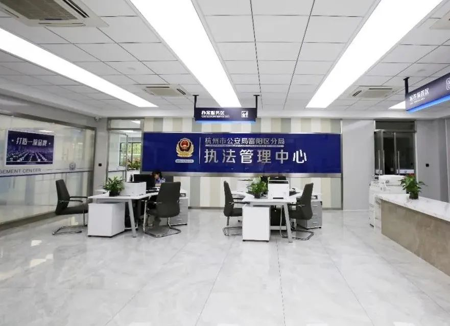 杭州市富阳区公安分局执法办案管理中心位于警察训练基地,该中心是集执法办案、执法管理、执法办公为一体的新型执法办案管理中心。以集约化办公、全流程管控、一站式服务、一体化协同、专业化支撑来撬动分局整体规范执法水平的提升,着力打造新时代富阳公安执法规范化建设“金名片”。