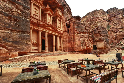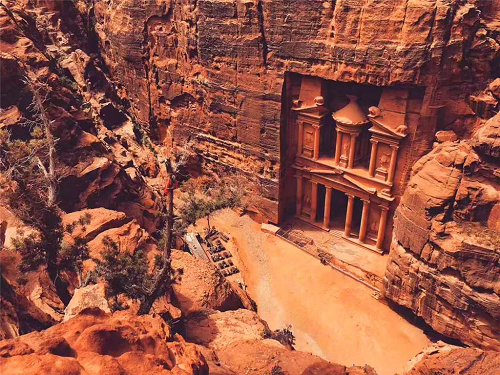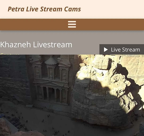 从佩特拉古城中心的前山上看风景,游客们很难有方法来拍一张完整的看到古城核心卡兹尼的难忘风景照片。依山雕凿的殿堂——卡兹尼,意为“金库”,是佩特拉城最美丽的建筑之一,传说里面曾收藏着历代佩特拉国王的财富。时至今日,此处令人惊艳的风景被天地伟业超星光球机实时记录,由约旦旅游当局在网络上发布了实时链接,让全世界的游客都可以一睹其风采。