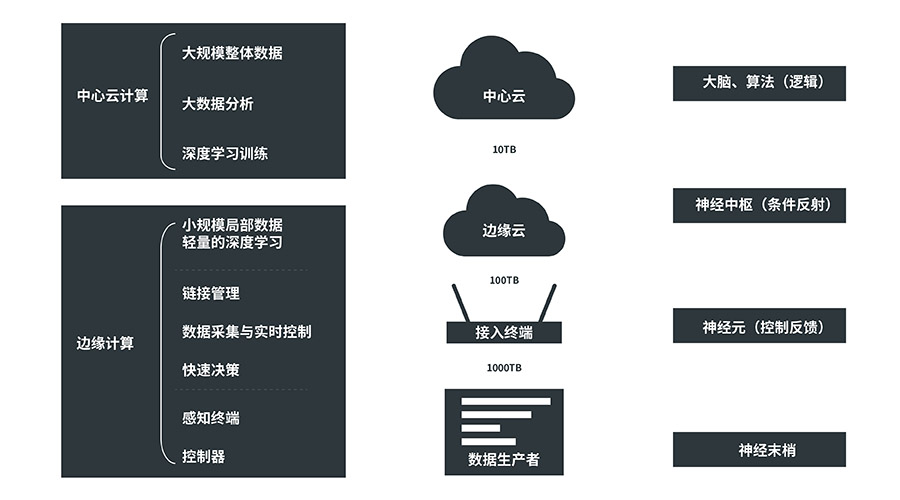 数字孪生下的万物感知互联将产生海量数据,而这些数据不可能全部传送到云计算中心,同时,工业互联网、自动驾驶、等领域对实时性要求极高,需要在网络边缘处处理数据,因此贴近终端设备的边缘计算成为云计算向边缘侧拓展的新触角。作为大规模整体数据分析的云计算中心,和小规模局部数据轻量处理的边缘计算节点,形成全局化的分布式协同计算形态,为数字孪生的精准构建与高效运行提供“算力”支撑。