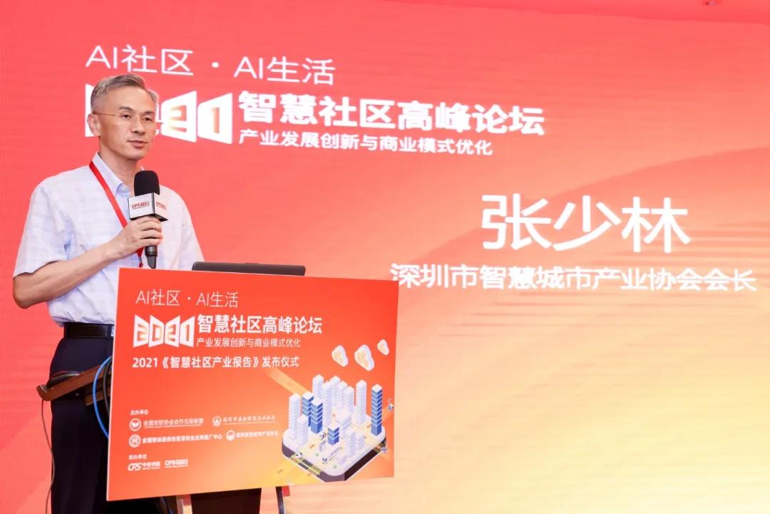 紧接着,深圳市智慧城市产业协会会长张少林发表致辞。张少林表示,互联网时代带来的“精细化管理平台”、“人工智能”等先进的技术的引入,使得传统社区迎来新的管理运营模式,受到挑战的同时也迸发出巨大的机遇。