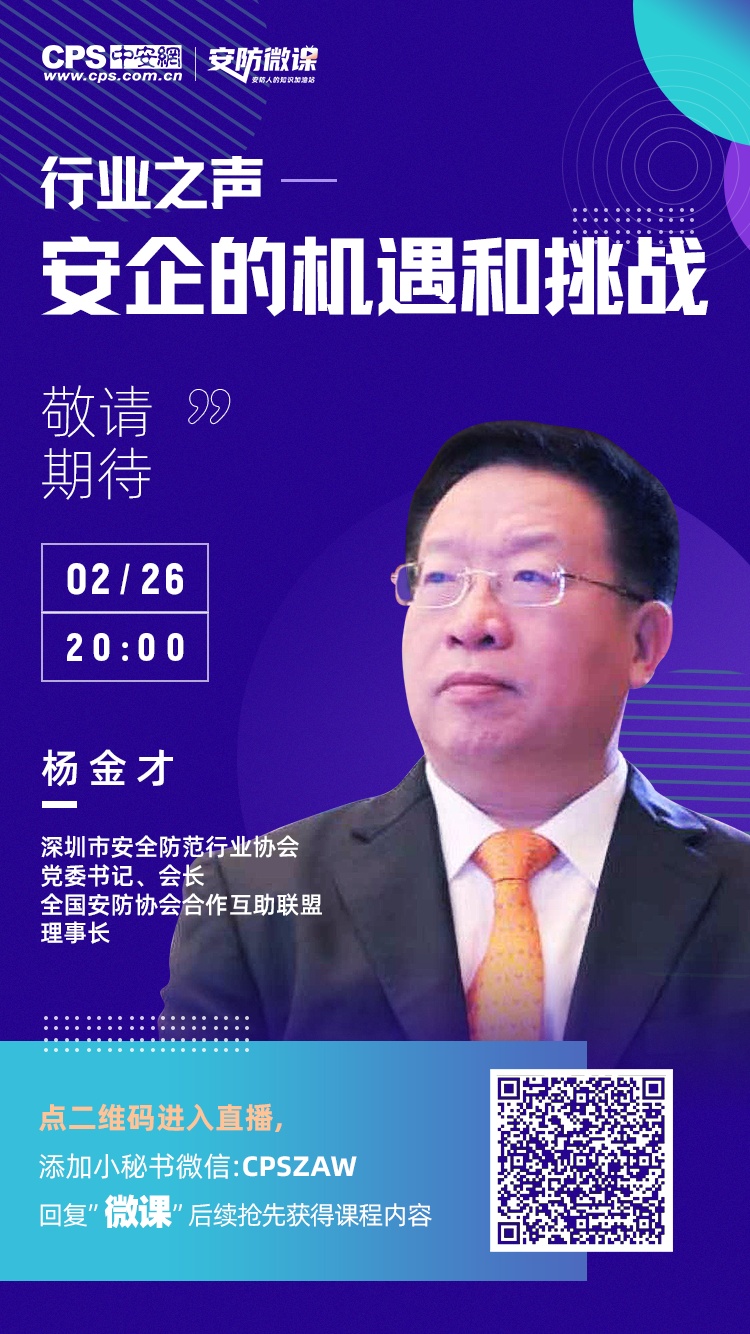 以上内容亮点,在2月26日(周叁)晚上8点,杨金才会长将与您相约“安防微课”直播间,为你详细解答。