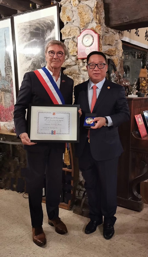 巴黎市长阿基里斯授予杨金才会长荣誉市民勋章