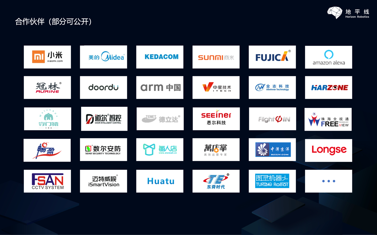 在 AIoT 领域,地平线旭日系列芯片解决方案截至目前出货量已达数十万套,是国内行业出货量最大的 AI 芯片方案。目前,地平线已携手上百家 AIoT 合作伙伴为产业提供赋能服务,与行业 Top 5 中的3家达成合作,并在智慧社区、智慧商业、智能楼宇、智慧校园、智能办公等典型场景与头部行业客户完成合作落地,实现线下场景服务数千万人口。在商业化进程中,一大批优质客户案例的落地在助推行业智能升级中起到了行业标杆示范效应,如商米、冠林、多度、SK电讯等。伴随着技术、产物、服务能力的快速提升,地平线赋能客户场景的深度和广度,还在不断拓展和成长。