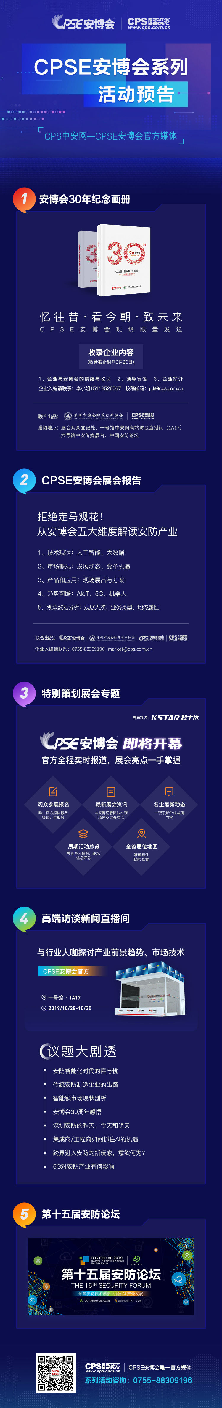此次颁笔厂贰安博会,颁笔厂中安网将在展会期间特别策划展会专题、限量发送安博会30周年纪念画册、举办高端访谈新闻直播间及第十五届中国安防论坛,会后还将发布颁笔厂贰安博会展会报告。
