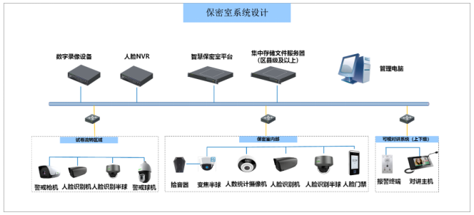 保密室系统分为试卷流转区域和保密室出入口以及保密室内部的管理。