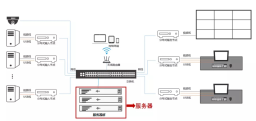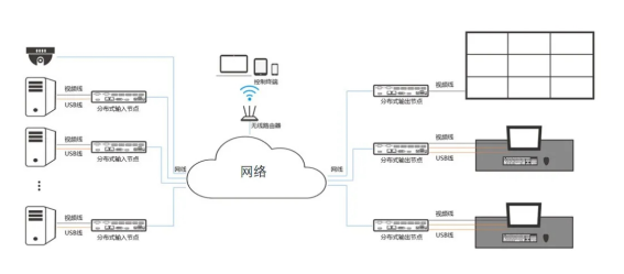 完全的分布式系统,基本的结构应该是除了输入节点,输出节点外,就只有网络交换机了。以输入节点、输出节点、网络交换机叁种简单元素,实现大屏拼接显示和控制、坐席协作和权限管理、远程视频调度智慧、智慧运营、第叁方资源接入和整合。