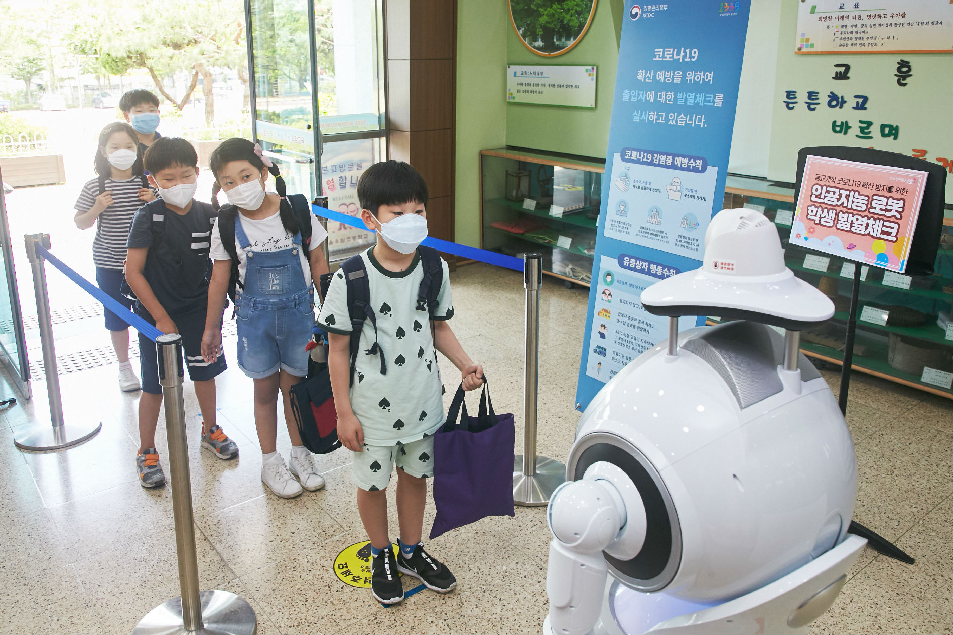 防疫机器人在韩国首尔武安小学服务