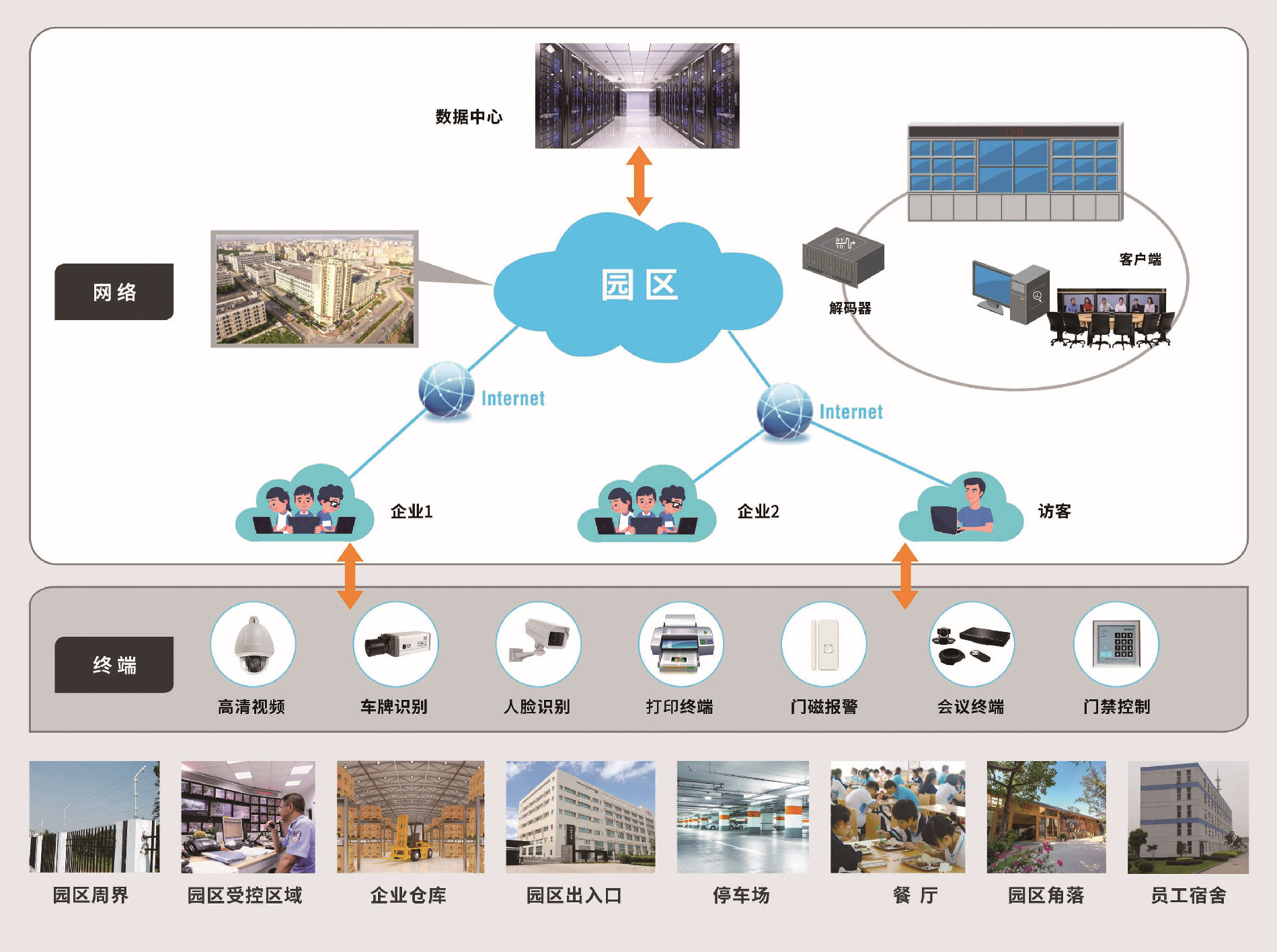 智慧园区以绿色、节能、高效、安全为基础,涵盖智慧门禁、智慧访客、智慧停车、、消防联动、考勤、智慧办公、广播、设备巡检等系统,集软硬件平台于一体,并通过综合管理平台实现对各网络设备的集中化管理和智能化管控。
