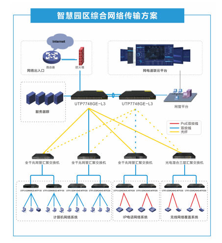 智能物联网时代,各终端设备采集的数据要传输到管理中心,并实现终端设备与云端之间的连接互通,网络传输设备作为智慧园区信息化系统的组成部分,其重要性不言而喻。