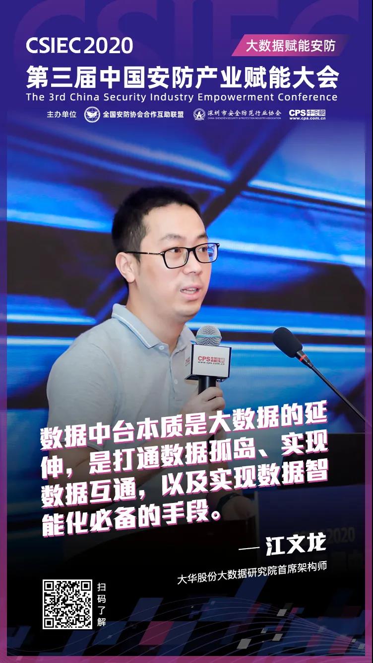 大华股份大数据研究院首席架构师江文龙,在会议上作了《安防新基建之行业化数据中台》的主题分享,详细介绍了在新基建的推动下,安防行业的数据中台建设情况以及面临的机遇和挑战。