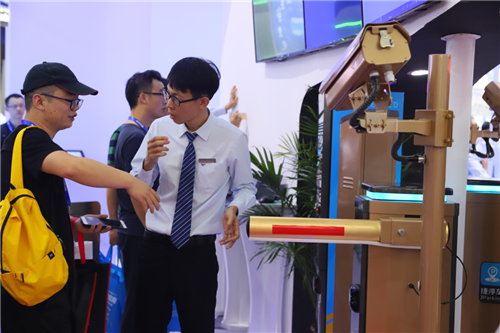 在深圳福田会展中心出入口,捷顺的智能设备正为2019安博会保驾护航