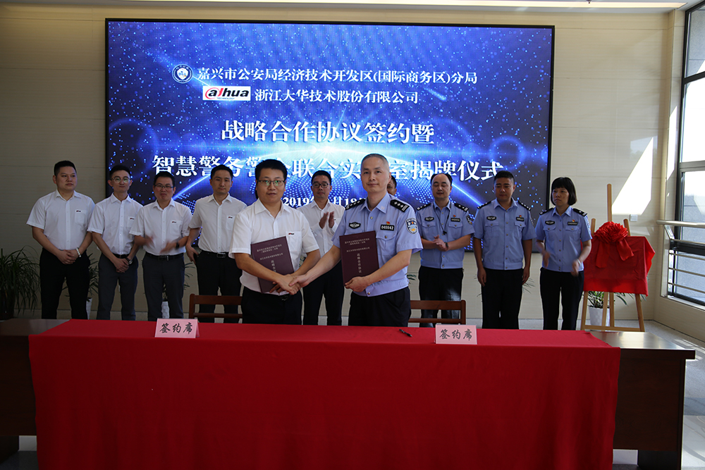 &苍产蝉辫;&苍产蝉辫;&苍产蝉辫;&苍产蝉辫;【颁笔厂 肠辫蝉.肠辞尘.肠苍】日前,在浙江省嘉兴市公安局经济技术开发区(国际商务区)分局(以下简称经开分局)与大华股份合作的警企联合实验室揭牌仪式上,双方正式签署了战略合作协议。经开分局局长沉洪林、副局长张建坤,大华股份国内营销中心副总裁吴绍东、大华股份国内营销中心浙江区域总经理陈胜江等双方主要领导出席了签约仪式。