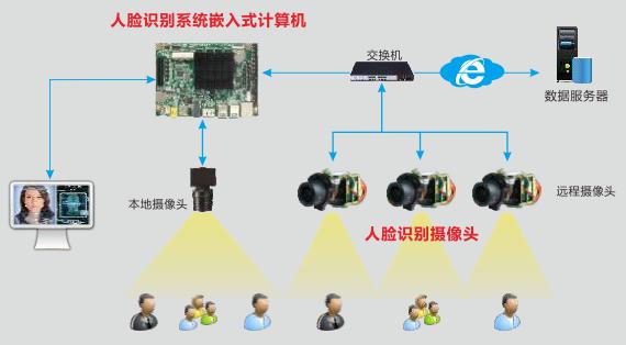 在公安网中部署人脸识别系统,主要是完成针对动态人像识别方面建设和静态人像识别方面建设。通过在辖区重要位置安装前端摄像机,并通过人脸识别平台对采集到的视频图像进行统一管理,经由人脸识别服务器进行特征提取和识别比对,存储设备进行记录,最终集群到人像大数据系统平台共享到公安专网下。结合领先的人脸检测算法、人脸识别算法等,该系统可实现实时图像、录像、动态黑名单比对报警、静态人脸图片检索与跟踪等功能。