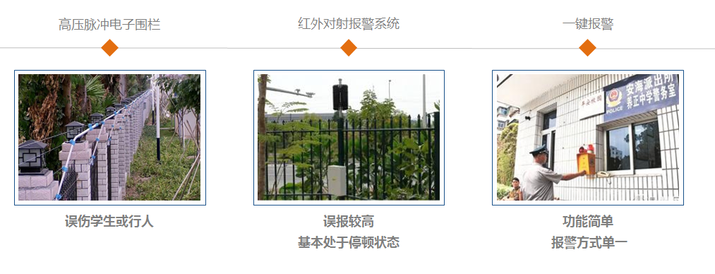 与此同时,校园用户需求也在变化,“事后诸葛亮”被动式的安防体系,已经被诟病。在我国,多数学校监控体系仅停留在记录层面,校园报警以红外对射及电子栅栏、电子桩等为主。如此一来,误报较高、误报联动声响干扰及带来的误报出警较多,时间一长系统基本处于停用状态;另一方面,从预警到应急处理的整体联动性较差,事前防控水平有待提高。
