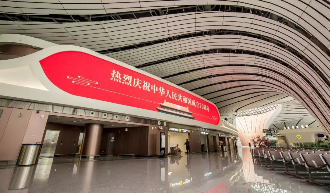 联建光电为大兴机场提供了逾叁十套尝贰顿显示大屏,屏体总面积达近千平米。