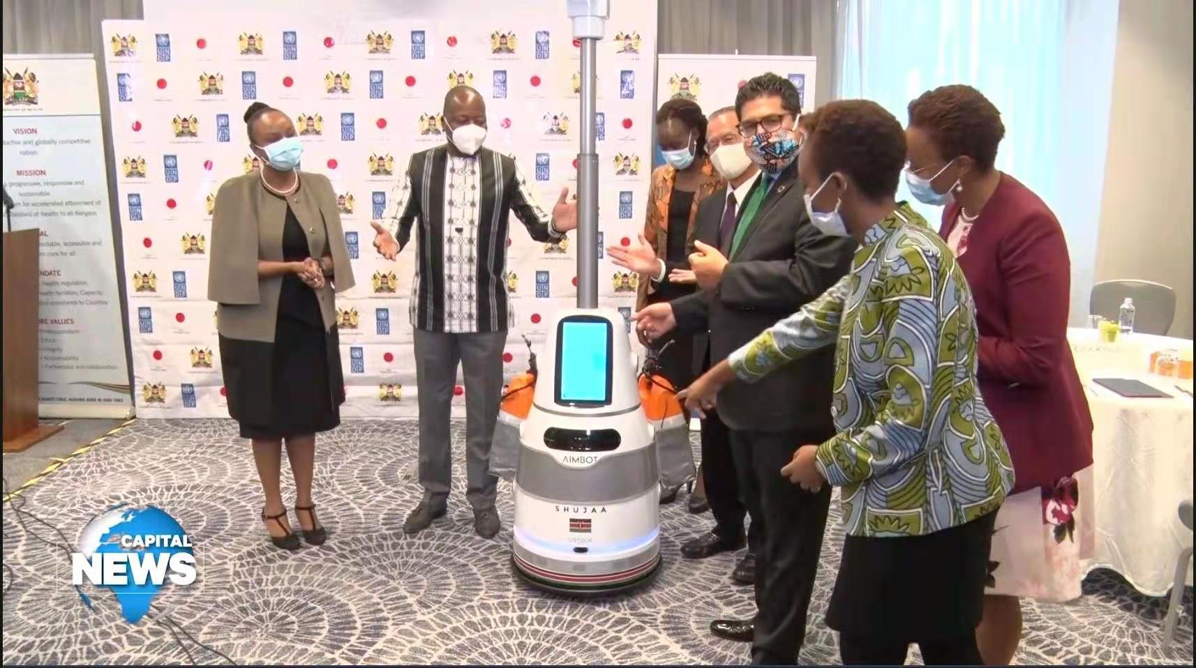 时值全球抗疫一周年,疫情仍在肆虐。 2021年1月22日,三台由联合国计划开发署(UNDP)捐赠的优必选AIMBOT (智巡士)室内防疫机器人到达东非国家肯尼亚,将陆续开展在医院、机场、酒店等公共场所的人体测温、口罩检测、信息播报、环境消毒等高频、高暴露工作,展现“AI无畏,科技向善”的抗疫精神。