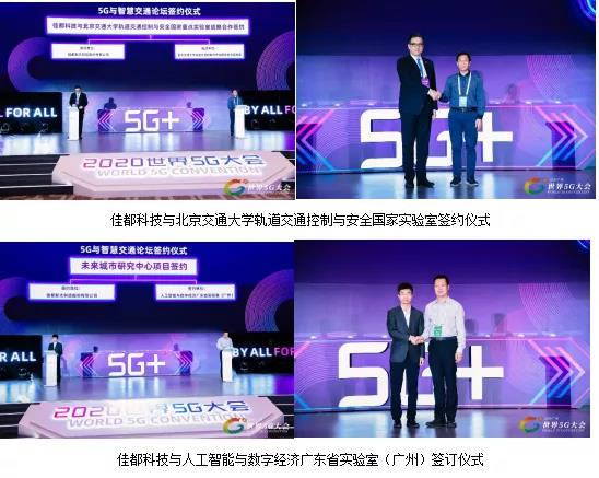 产学研合作是推动技术创新发展和落地的有力举措。大会上,佳都科技与北京交通大学轨道交通控制与安全国家实验室、人工智能与数字经济广东省实验室(广州)分别进行了战略合作签约。