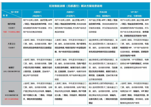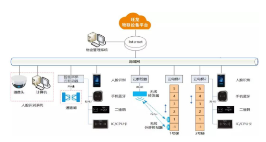 普通电梯升级智能派梯(无感通行)通用性:普通电梯加装旺龙智能派梯(无感通行)设备,无需电梯公司开放接口,旺龙自主研发的电梯状态检测器能获取各电梯轿厢状态(所在楼层、运行状态、门开关),供系统查看和电梯调度运行使用;同时通过旺龙云群控器大脑统一调度电梯,同时向电梯发送命令,驱动指定电梯完成外呼、内呼、开放权限等功能。