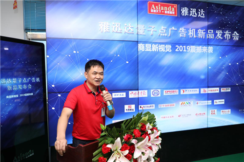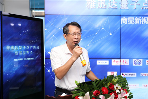 雅迅达总经理欧阳平先生为感谢媒体以及合作伙伴的支持发表了重要讲话,并简述了经过多年努力,组建了一支研发能力过硬的技术团队,并与量子点技术专家、北京大学郭海清教授合作,聘用其为技术团队首席专家。量子点广告机产物从2016立项到研发到现在2019年量产,历经叁年多的潜心研发终于正式与大家见面。
