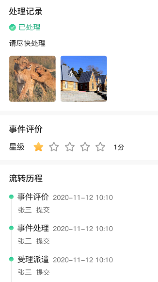 物业管理人员在收到居民提交的报事报修反馈后,及时进行派工处理,保证维修工作得到及时有效的处理,实现流程一体化,提升物业的服务效率。