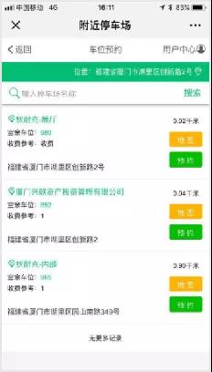 ▲颈尚停车微信公众平台