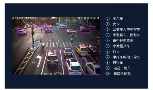 车辆卡口系列除常规车辆类型外,可以做11大类机、非、人目标检测。
