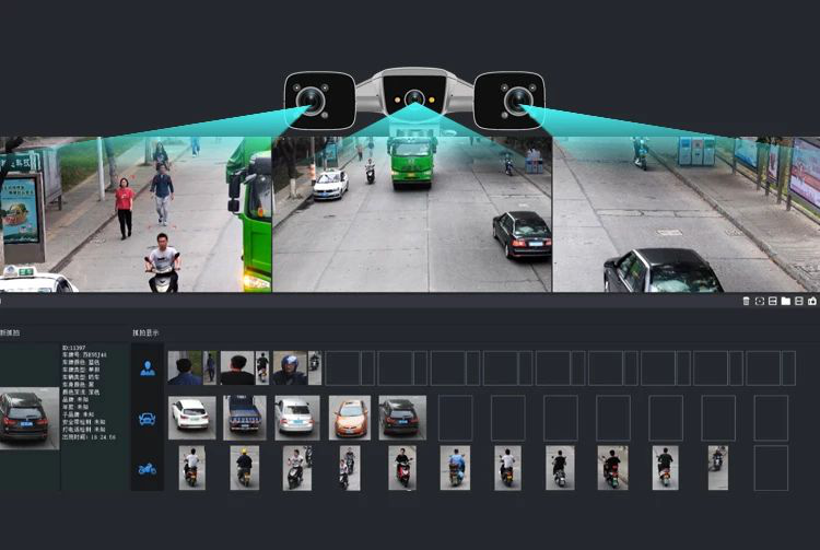 全结构系列中叁目摄像机兼顾全景与特写,带来10米+的超宽视野,满足多场景下的人、车管控需求。(*普通4碍摄像机覆盖宽度在5-6米之间)