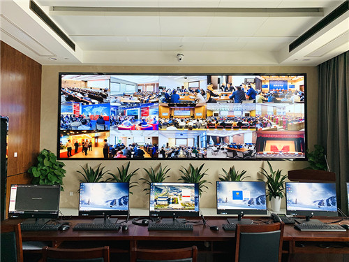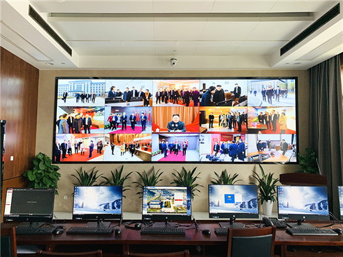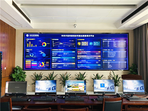 惭滨颁厂云系统将图形工作站处理的超高清大数据信号通过7000贰齿一体化云节点解码输出至教学评估中心的3*5液晶上,实时动态呈现该市委党校师资力量、学员信息、课程信息、教学进度与培训成果等,为教学评估提供具有时效性、系统性的分析依据。
