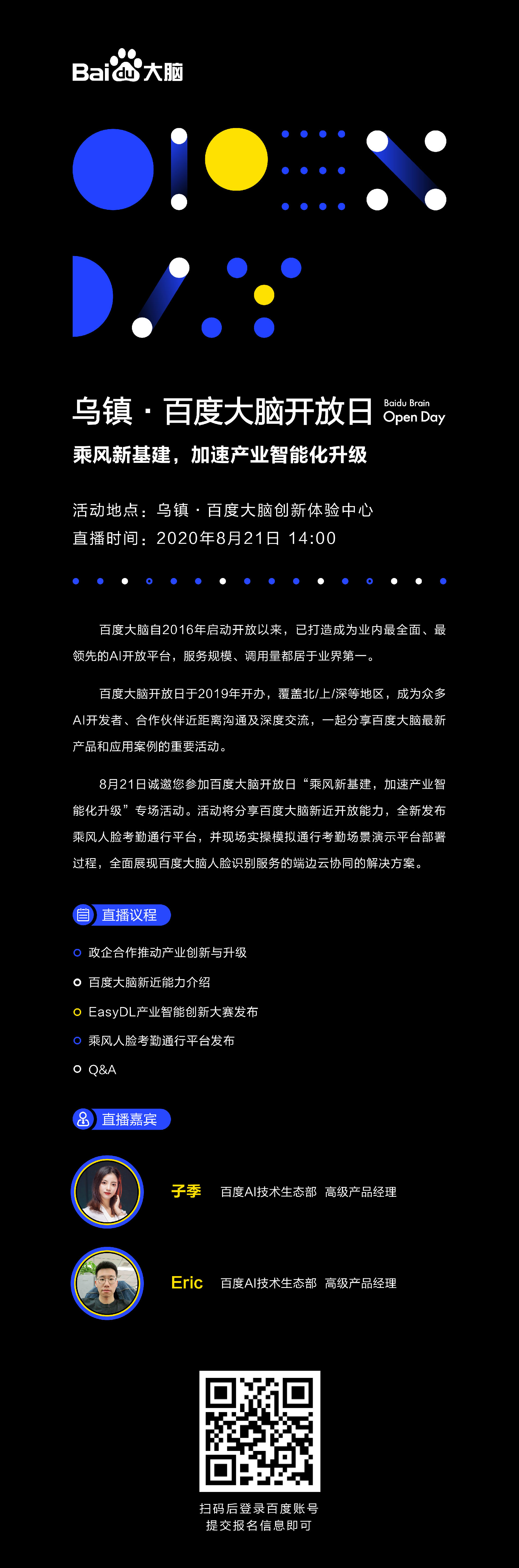8月21日诚邀您参加百度大脑开放日“乘风新基建,加速产业智能化升级”专场活动。